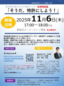 イベント・各種有益情報 TOP イベント・各種有益情報 医学研究者のための知財セミナー医療機器編20251106v2 イベント情報 2025年10月27日 医学研究者のための知財セミナー医療機器編20251106v2 一覧にもどる イベント・各種有益情報 イベント情報 公募情報 イベント・公募掲載依頼/メールマガジン発信依頼について medU-net 会員募集 よくあるご質問