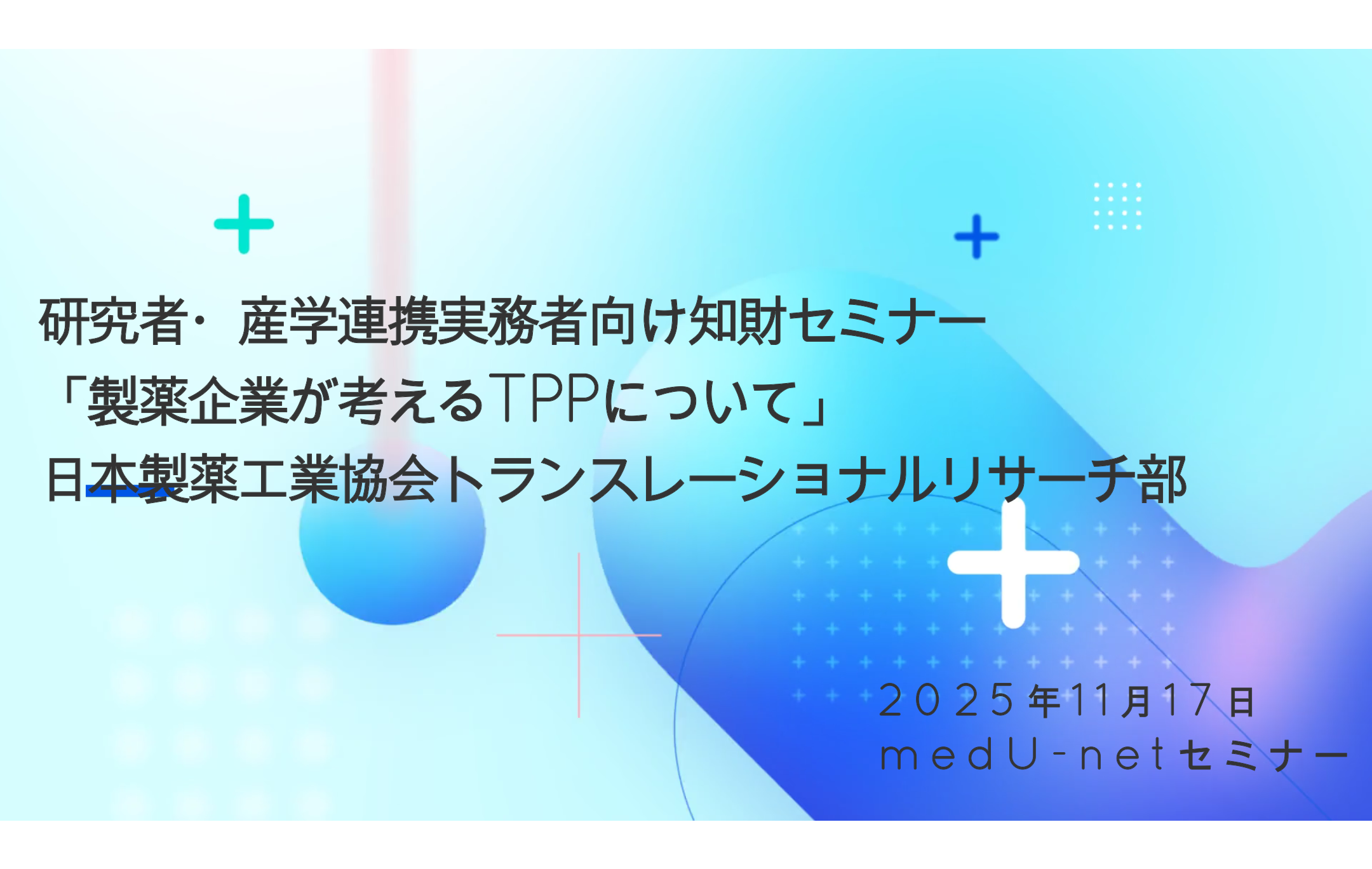 『製薬企業が考えるTPPについて』研究者・産学連携実務者向け知財セミナー(2025年11月17日開催)