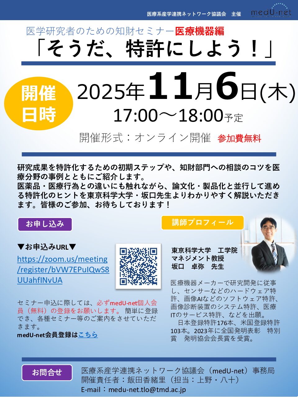 11月6日開催!「そうだ、特許にしよう!」知財セミナー医療機器編 開催